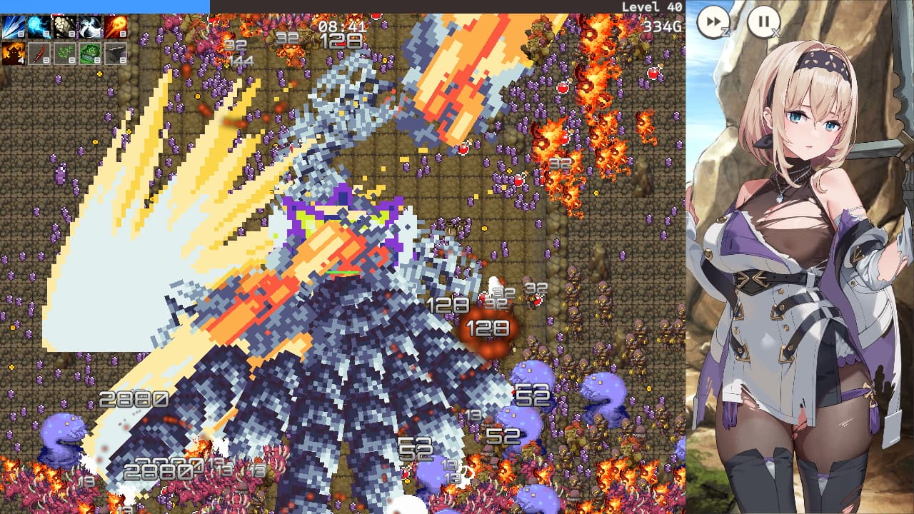 这是一款与蜂拥而至的魔物群对抗的生存动作游戏。通过每次升级时随机获得的技能来强化角色吧。任务失败将触发场景。多次失败会导致坏结局。