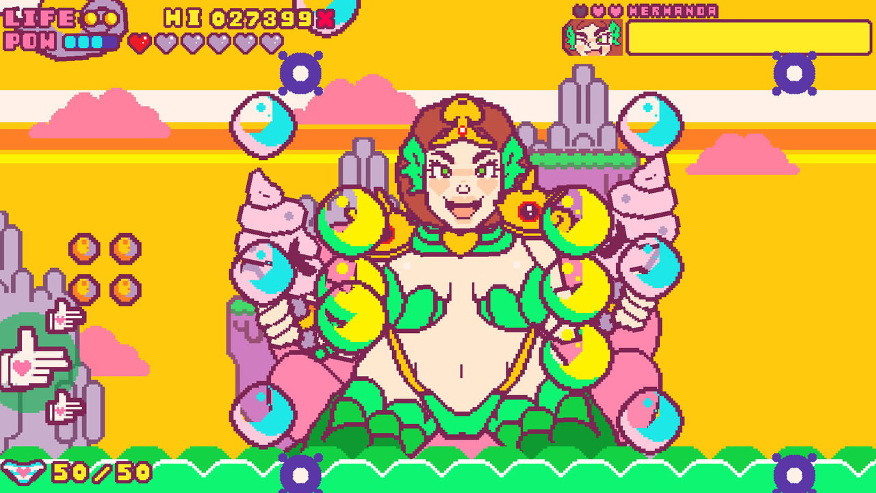 在一场可怕的悲剧中,卡西诺・卡伦和她的巨型动漫老婆军团绑架了你的女友。Fingun 再度出击!在 9 个充满活力的横向卷轴射击关卡中一路狂飙!通过射击打掉巨型动漫女孩(还有一两个古怪怪物)的衣服来击败她们,并在途中解锁一些情色内容。