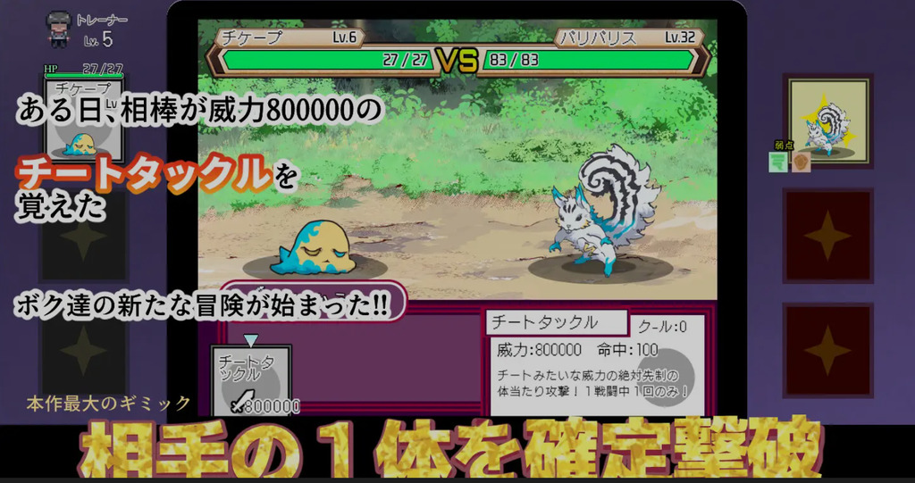 培养怪物挑战战斗,以最高为目标!活用了主人公搭档的王牌『チートタックル』,打败压倒性的对手!
