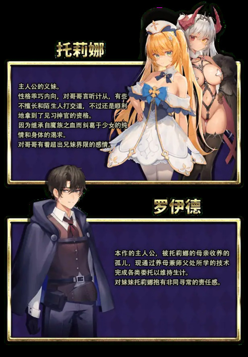 『解开妹妹魅魔化的关键是——打倒魔王!?』平凡不过的边境城镇阿斯林顿中,主人公罗伊德和他的妹妹托莉娜,为了根治妹妹的魅魔化症状,调查被封的印魔王的真相,透过战斗和合成一同变强,探索迷宫的王道RPG!只不过—『日与夜的平衡!体力与魔力需求的管理!—你能满足今夜的妹妹吗?』
