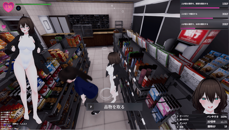 七个露出的定番舞台在等着你。一开始是在宁静的住宅区……然而,你不会因此而满足……舞台逐渐升级。即便如此,你有挑战的觉悟吗?
