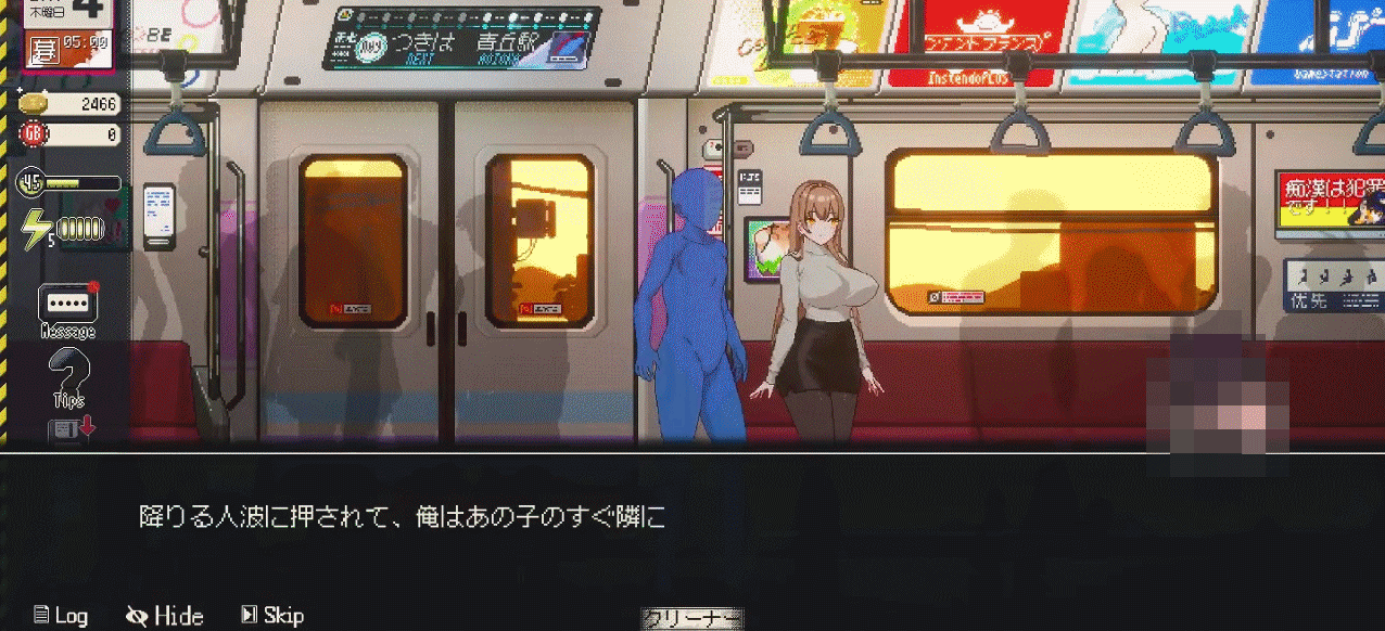 在城市中自由探索、与居民交流的日常系模拟游戏,这是一款采用 2D 像素画风格的横向卷轴式日常模拟游戏。玩家将扮演人生陷入困境的主角,在度日的同时为处理性欲而逐渐堕落,最终转变为为满足欲望而不择手段的人。电车内的猥亵行为。
