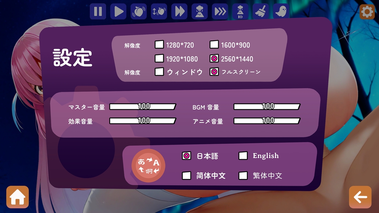 通过分辨率调整实现舒适游玩。通过音量调整提升沉浸感。支持日语、英语、简体中文、繁体中文!