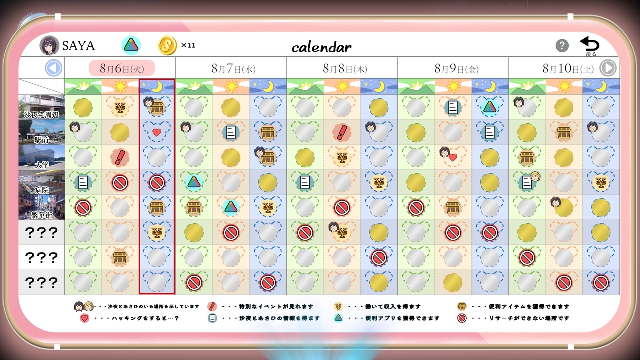 日历允许您使用某些应用程序更改女主角的位置,由于行动的结果,角色的状态也会发生变化…